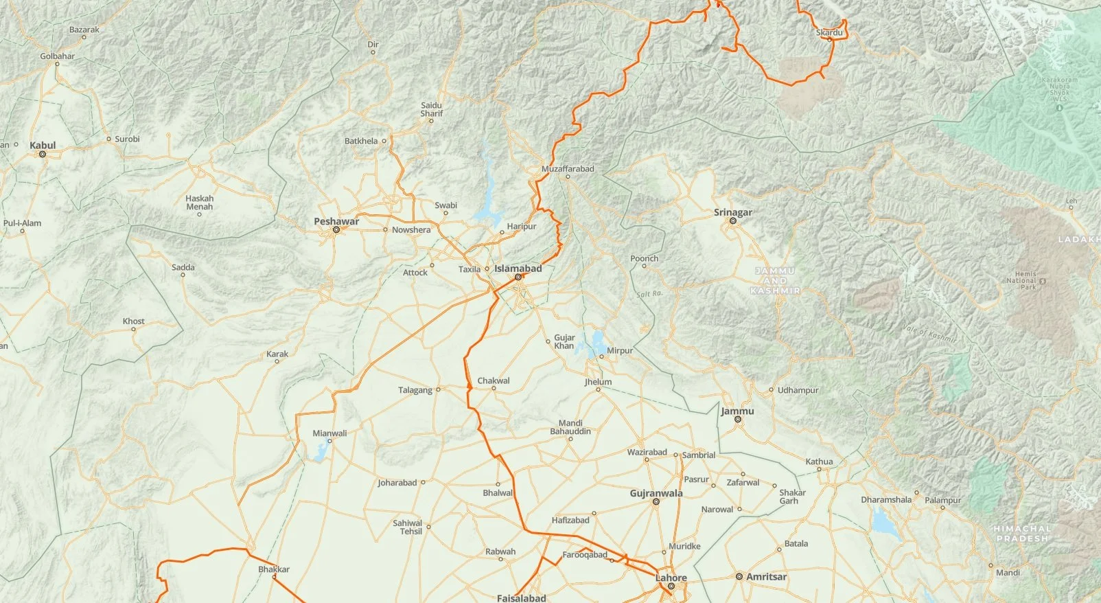 Route in Pakistan, Stand 04.09.22. Quelle: Gaia GPS / Open Street Map