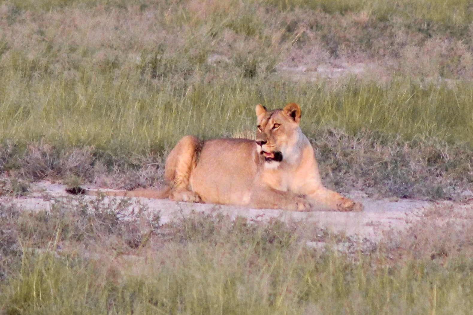Nach einer kühlen Dusche und einem verspäteten Mittagessen nahmen wir unsere letzte gemeinsame Pirschfahrt auf und wurden nach diesem anstrengenden Tag mit dem Löwen belohnt, der uns morgens weckte. Dort, wo das Auto noch wenige Stunden zuvor stillstand, machte er sich sich gemütlich und ließ sich von unserer Anwesenheit überhaupt nicht stören. Einige Minuten genossen wir es, ihn zu beobachten und verabschiedeten uns, nachdem er uns zeigte, wie laut er brüllen kann. Besser hätte der Tag doch nicht enden können. Und mit einem kühlen Glas Wein stießen wir auf den erfolgreichen Tag an.