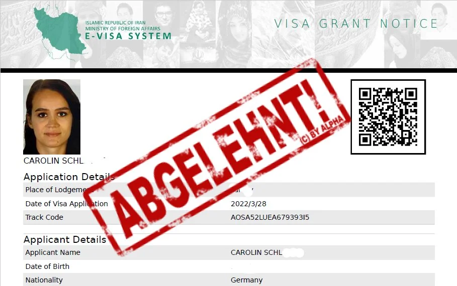 Drei Tage nach Beantragung des Visums durch eine Agentur traf Julians Bestätigung ein. Wir waren etwas verwundert, dass Caros Visum nicht dabei war, warteten zunächst aber einige Tage ab. „Bestimmt liegt der Antrag ganz oben auf der Bearbeitungsliste“, machten wir uns vor. Nach weiteren Tagen Wartezeit erhielten wir dann jedoch die Nachricht, dass das Visum abgelehnt wurde. Damit haben wir nicht gerechnet, schließlich hatten wir uns nichts vorzuwerfen. Von anderen Reisenden haben wir allerdings von ähnlichen Fällen gehört. Grund der Ablehnung für unser Visum war laut der Visa-Agentur, dass man keinen touristischen Zweck hinter der Reise sieht. Was dies bedeutet, ist für uns Spekulation. Mehr konnten wir - auch auf Nachfrage - dazu nicht herausbekommen. In den meisten Fällen ist es jedoch so, dass der Iran Spionage im Land befürchtet und deshalb manchen Reisenden ein Visum verwehrt. Und manchmal reicht den Behörden schon ein Foto auf Instagram, ein gelikter Beitrag von Regime-Kritikern oder eben ein Blog wie dieser, um ein Visum zu verwehren.